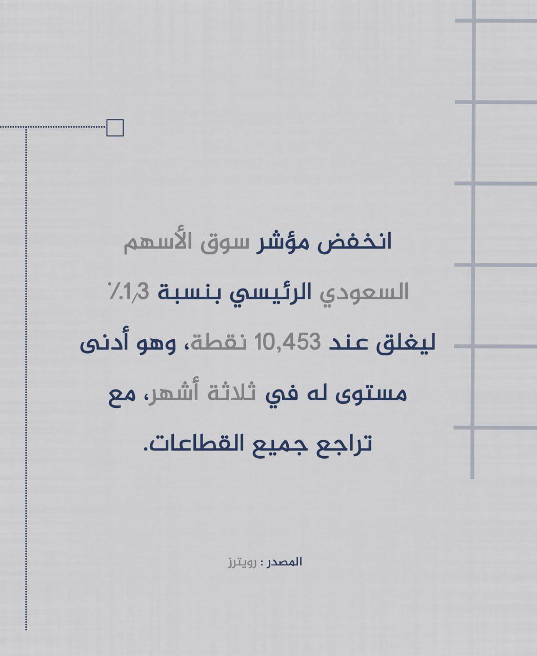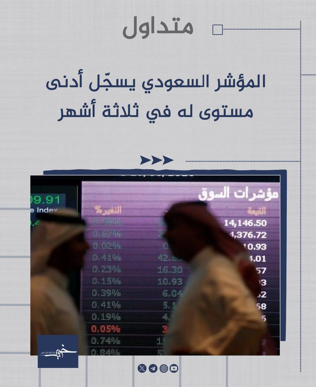#متداول : المؤشر السعودي يسجل أدنى مستوى له في ثلاثة أشهر