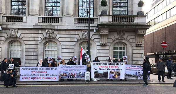 وفي العاصمة البريطانية لندن، أقام نشطاء وقفة احتجاجية للشيخ الشهيد النمر، من تنظيم الجالية البحرينية رفعوا خلالها صور الشيخ الشهيد وصور للجرائم النظام السعودي في اليمن.
