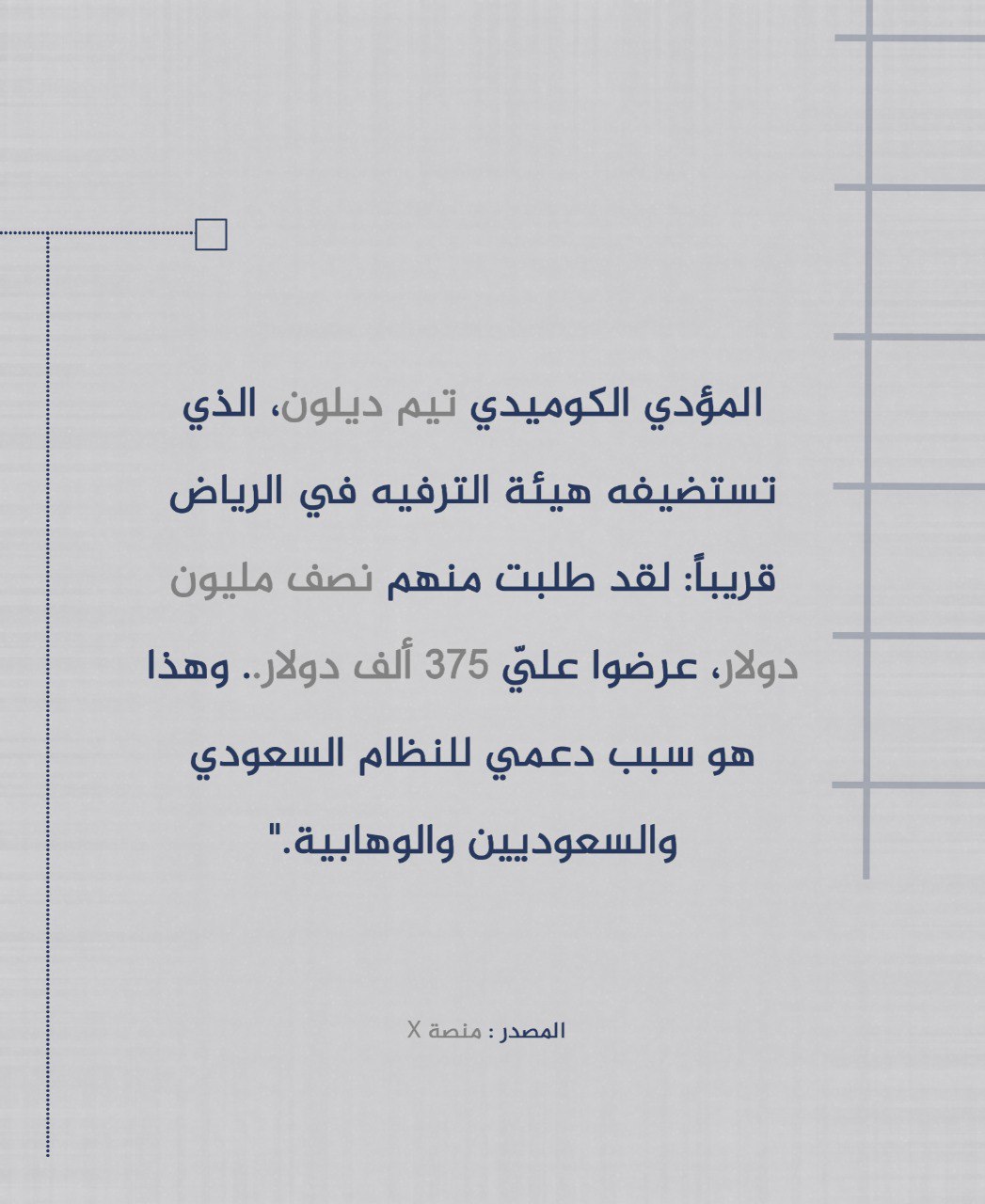 #متداول: المؤدي الكوميدي تيم ديلون يكشف ما تقاضاه من السعودية