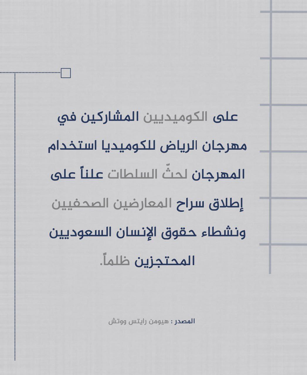 #متداول: منظمة حقوقية تذكر المشاركين في مهرجان الرياض للكوميديا بحقوق الإنسان