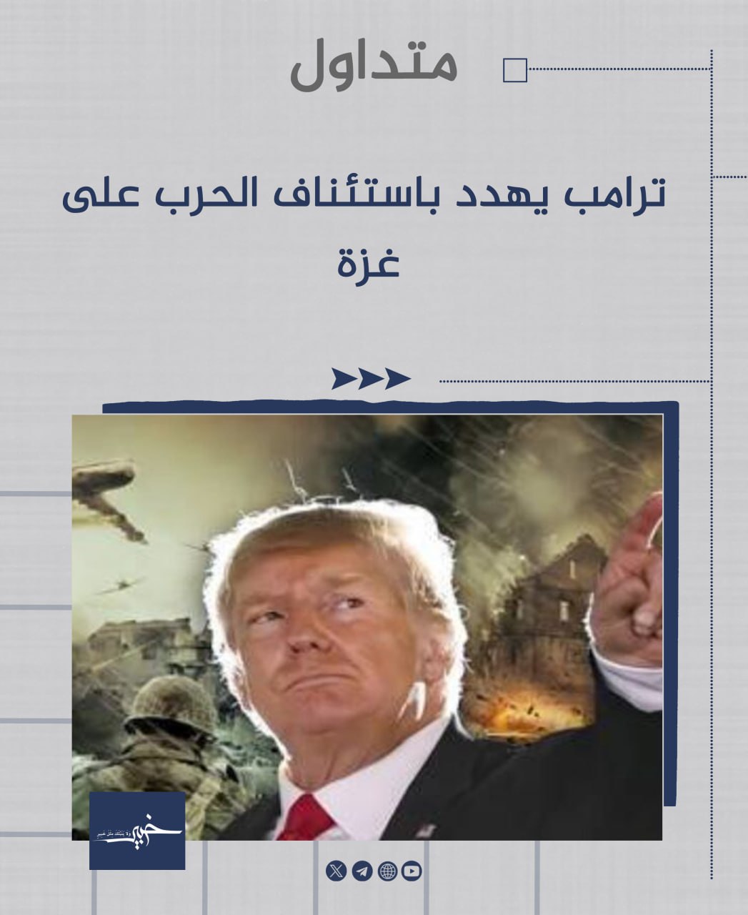 #متداول : ترامب يهدد باستئناف الحرب على غزة