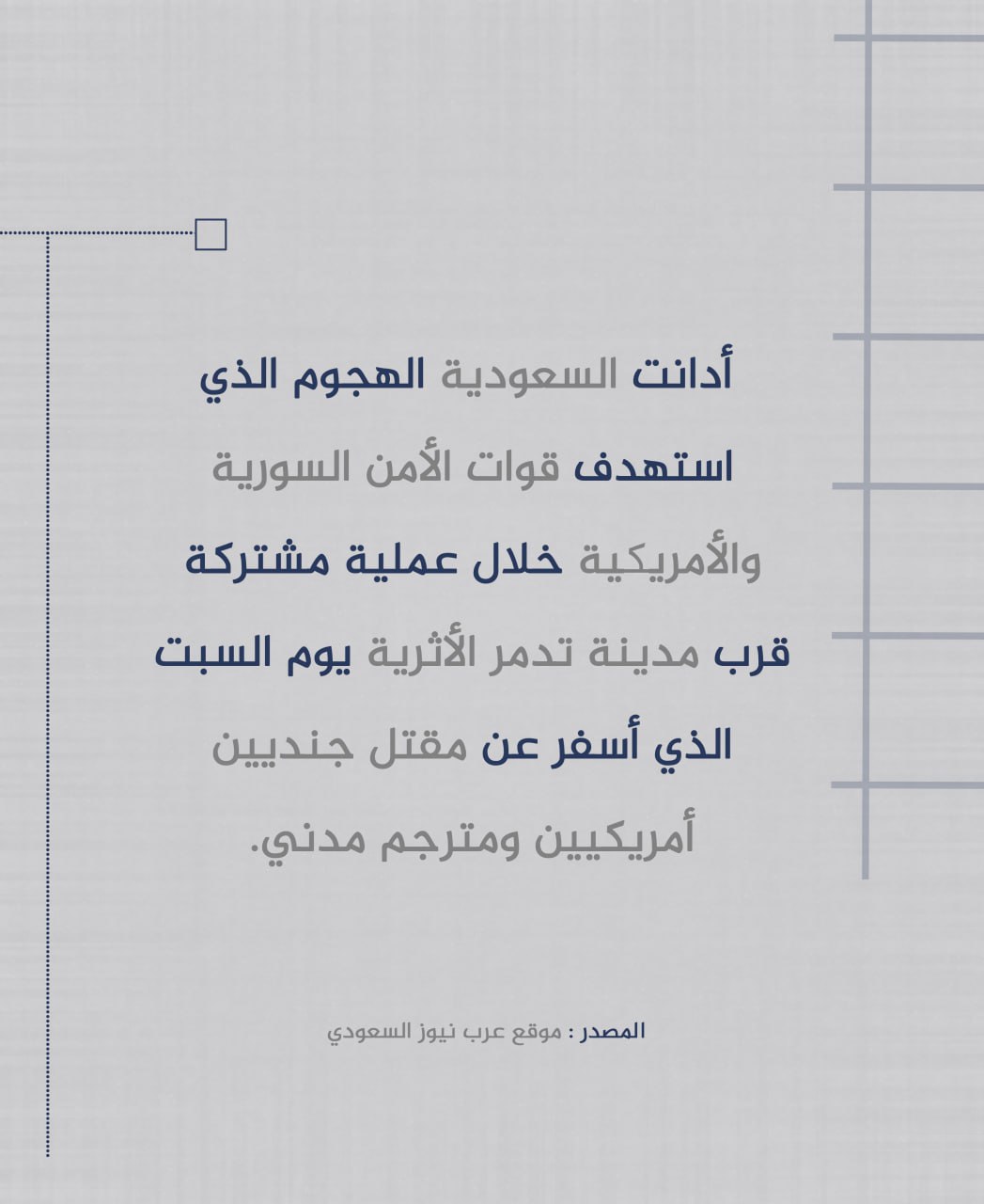 #متداول: السعودية تدين الهجوم الذي استهدف قوات الأمن السورية والأمريكية