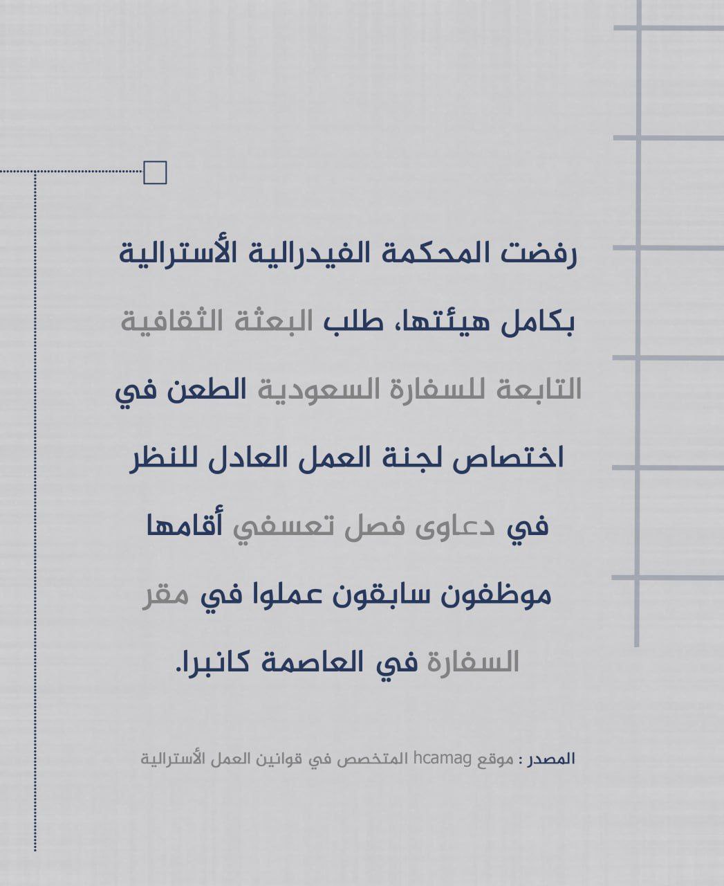 #متداول: محكمة أسترالية ترفض الحصانة عن السفارة السعودية في دعاوى قانونية