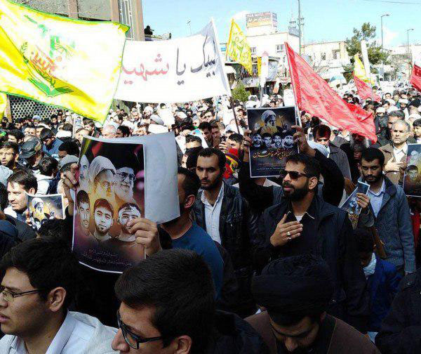 وأنطلق موكب التشييع من حرم السيدة المعصومة عليها السلام، وجاب المشيعون الشوارع حاملين نُعوشَ الشهداء، رافعين صورهم وصور سماحة الشيخ عيسى قاسم وسط شعارات الوفاء لدمائهم، والمطالبة بالقصاص من القتلة، لينتهي الموكب عند قبرة بهشت معصومة حيث مثواهم الأخير.