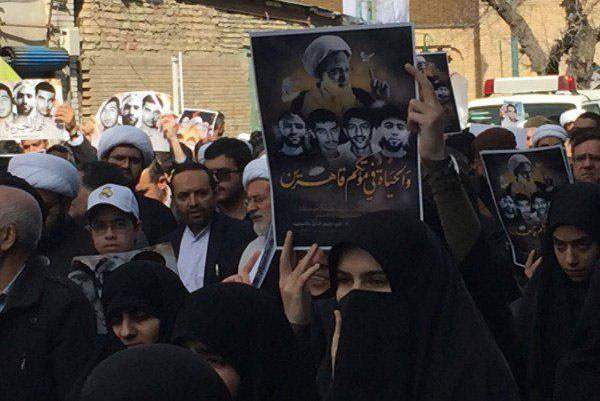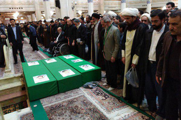 وصلى على رفاة الشهداء إمام جمعة قم المقدسة آية الله سيد محمد سعيدي، حسبما نقلت "منامة بوست".