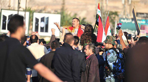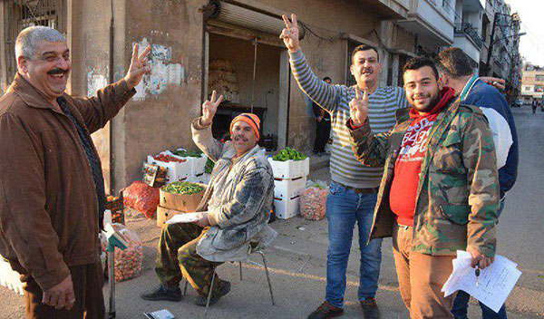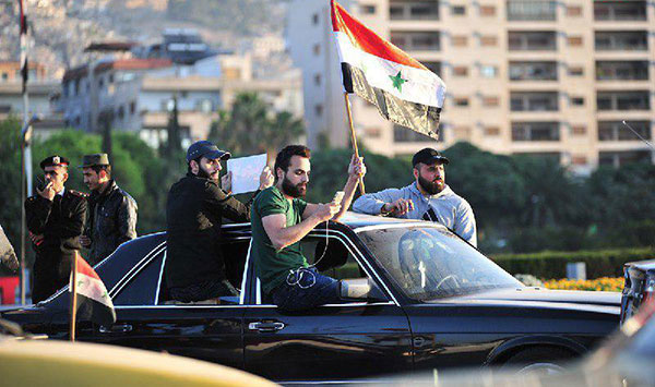 ونزلت الجماهير السورية للشوارع احتفالاً بالنصر وتأييداً للجيش السوري.