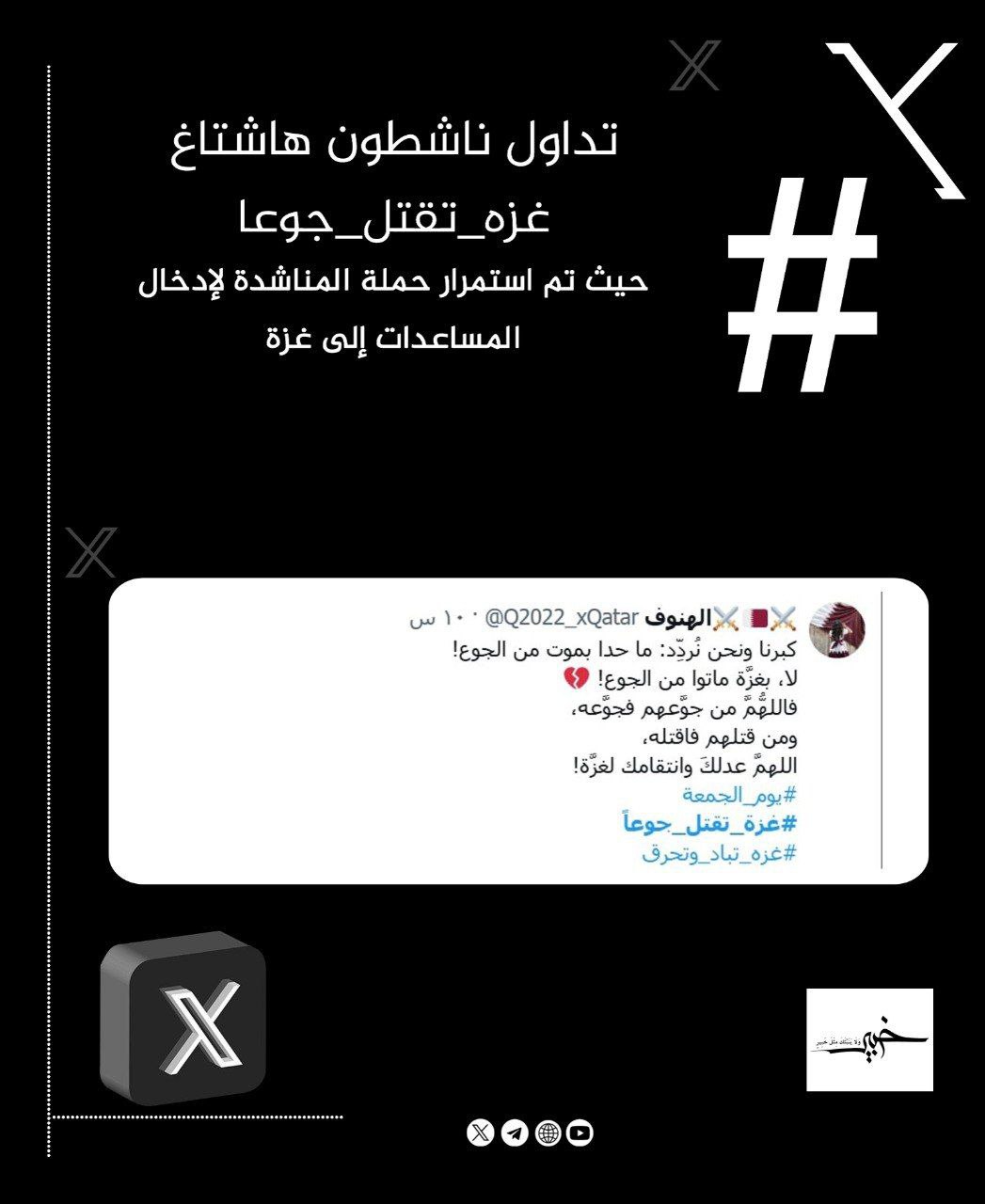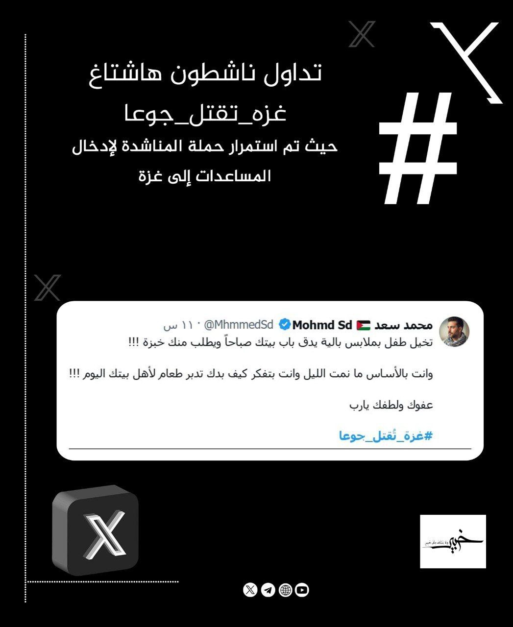 تداول ناشطون هاشتاغ #غزة_تقتل_جوعا