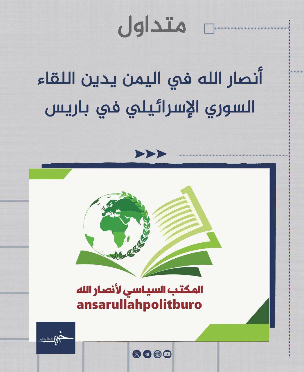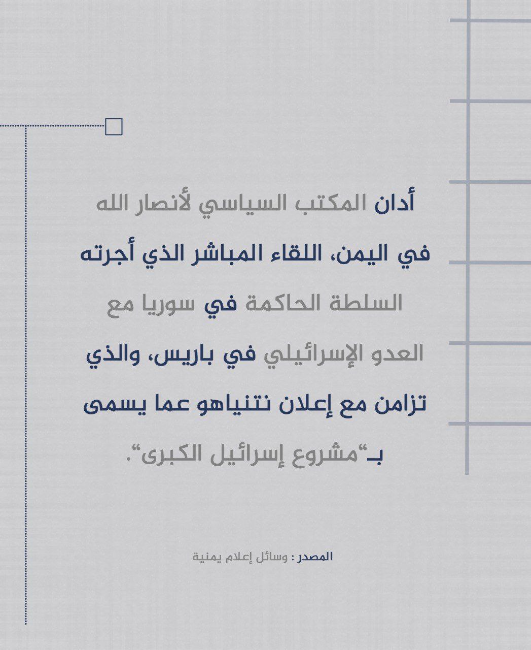 #متداول: أنصار الله في اليمن يدين اللقاء السوري الإسرائيلي في باريس