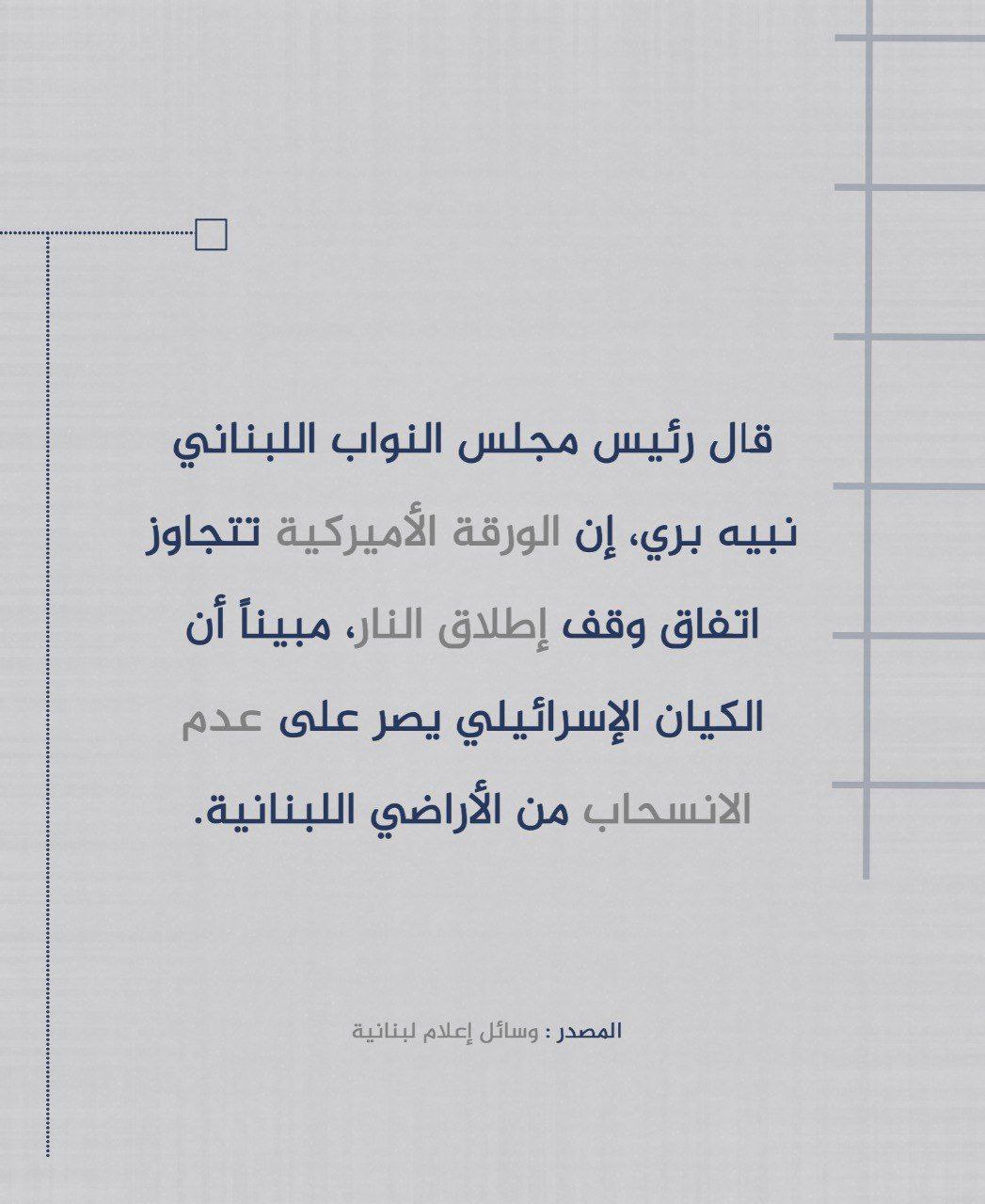 #متداول: رئيس مجلس النواب اللبناني يحذر من الورقة الأمريكية