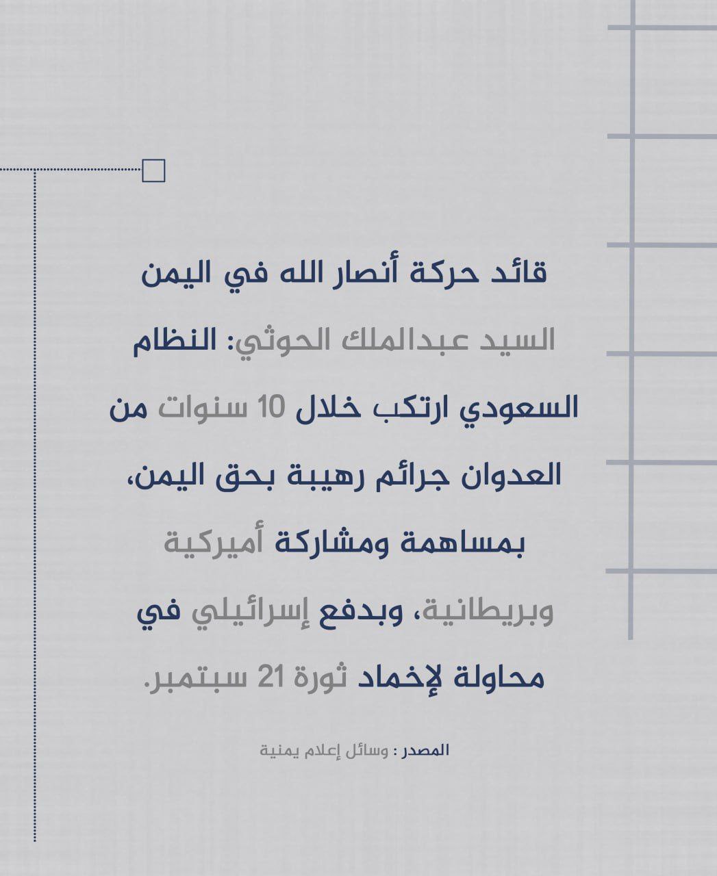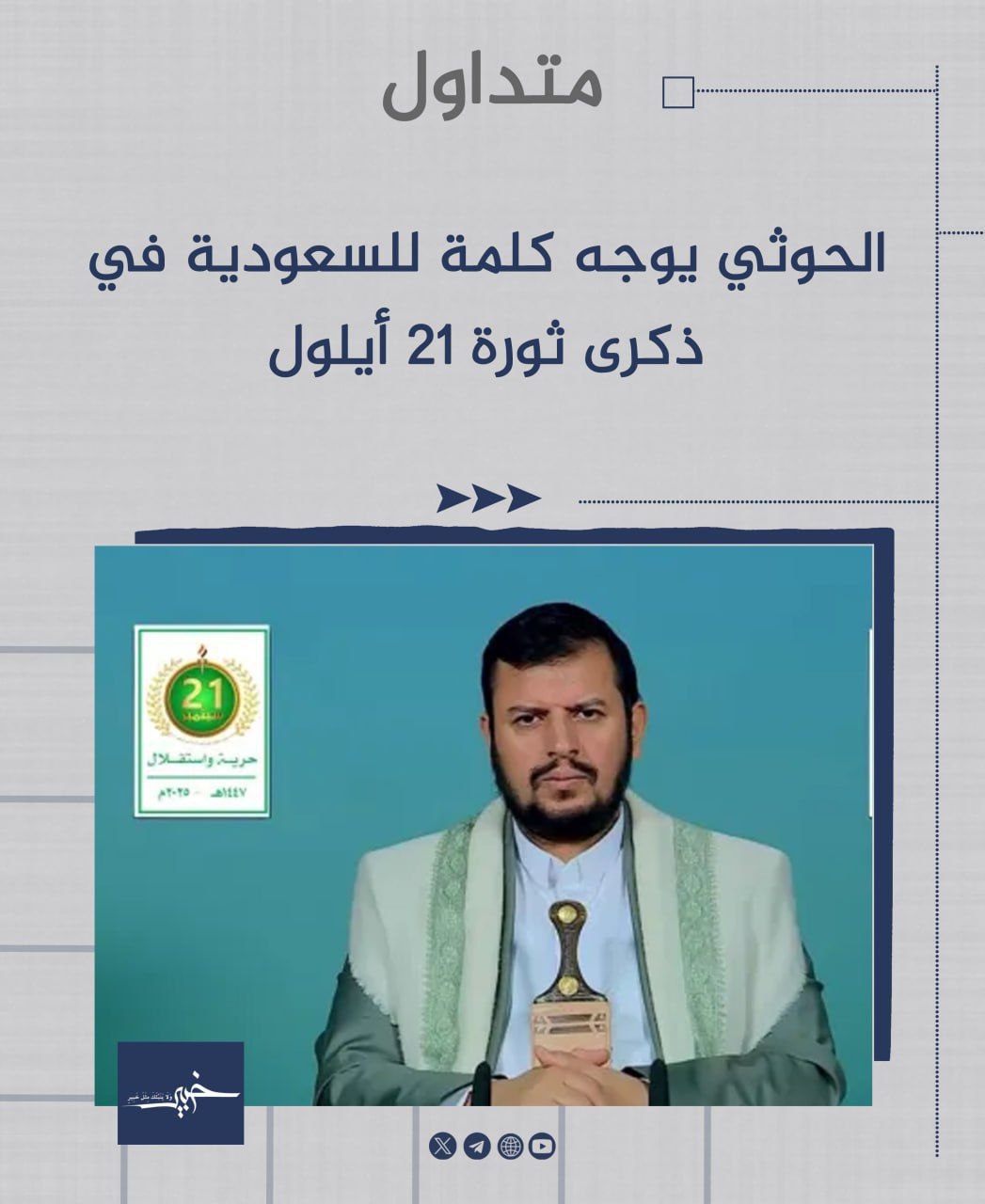 #متداول: الحوثي يوجه كلمة للسعودية في ذكرى ثورة 21 أيلول