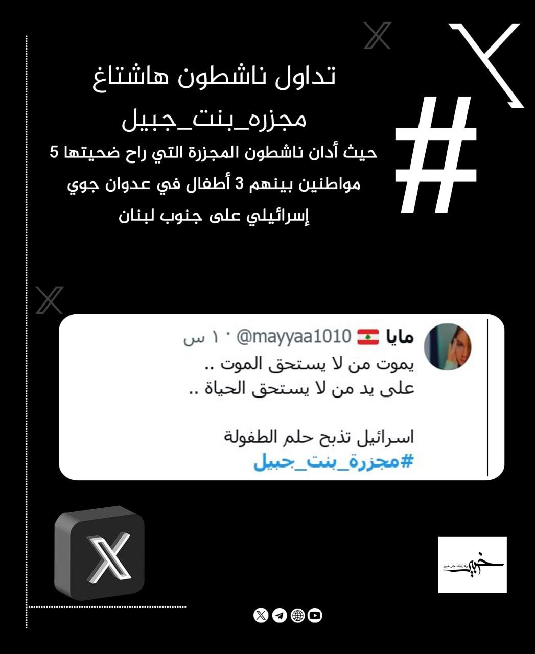 تداول ناشطون هاشتاغ #مجزره_بنت_جبيل