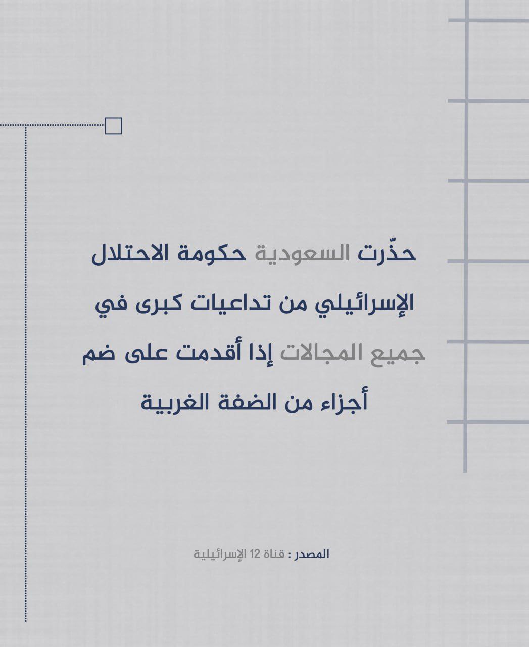 #متداول: السعودية تحذر "إسرائيل" من تداعيات ضم الضفة الغربية