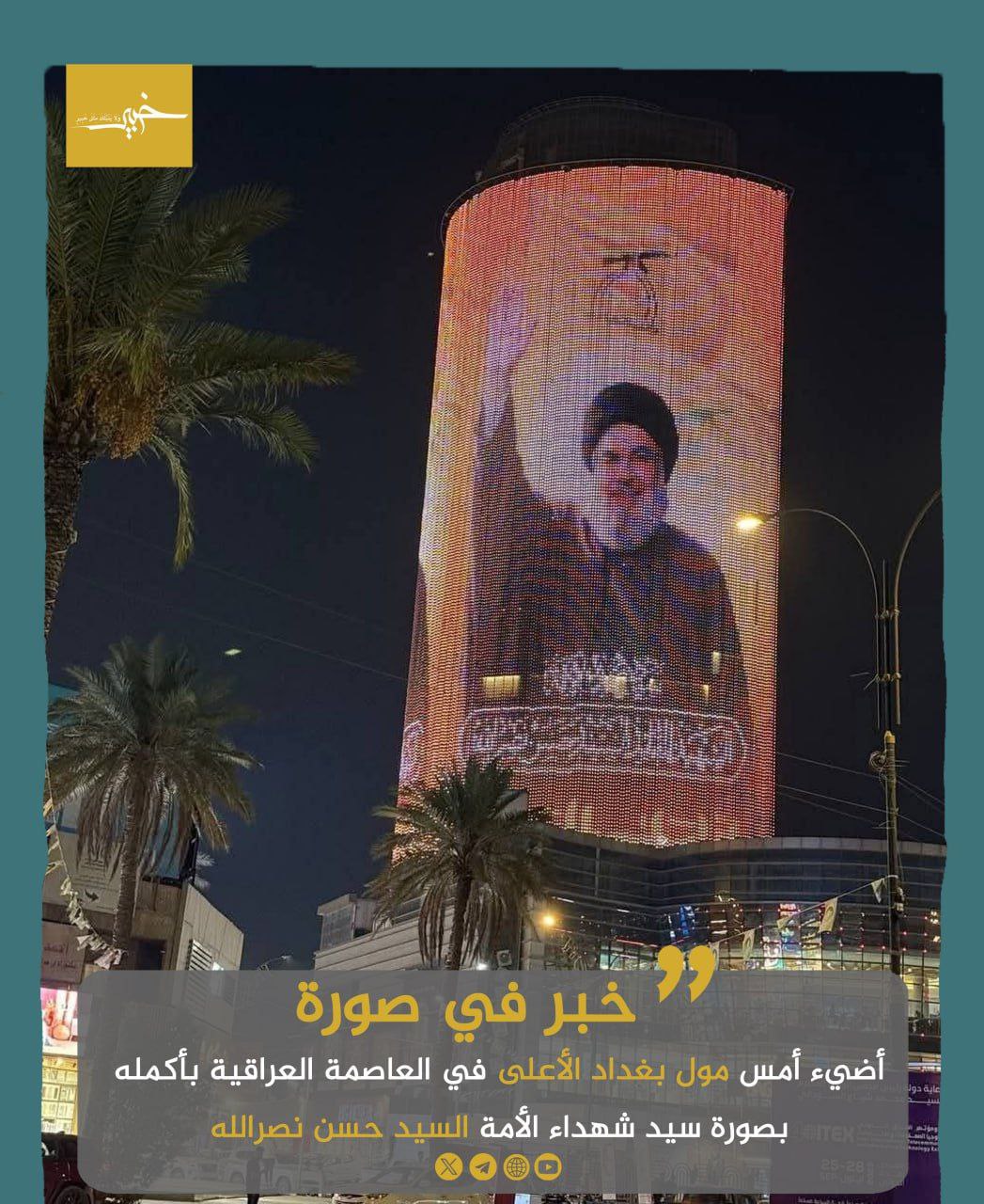 #خبر_في_صورة: إضاءة مول عراقي بصورة الشهيد نصرالله