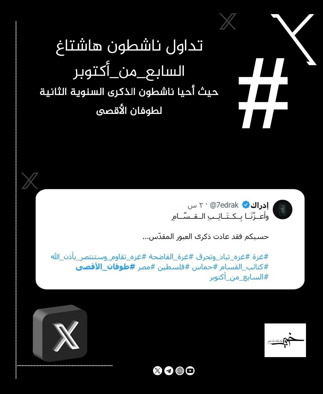 تداول ناشطون هاشتاغ #السابع_من_أكتوبر
