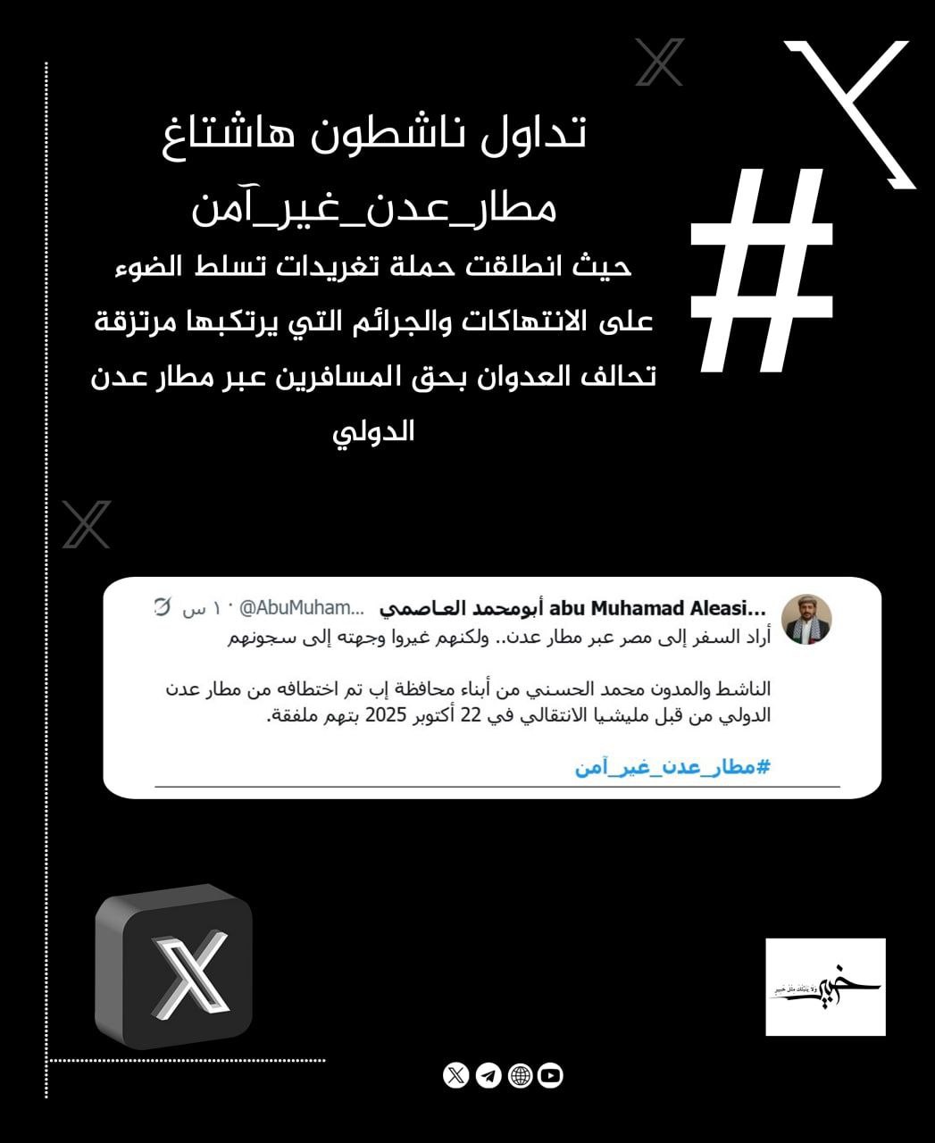 تداول ناشطون هاشتاغ #مطار_عدن_غير_آمن