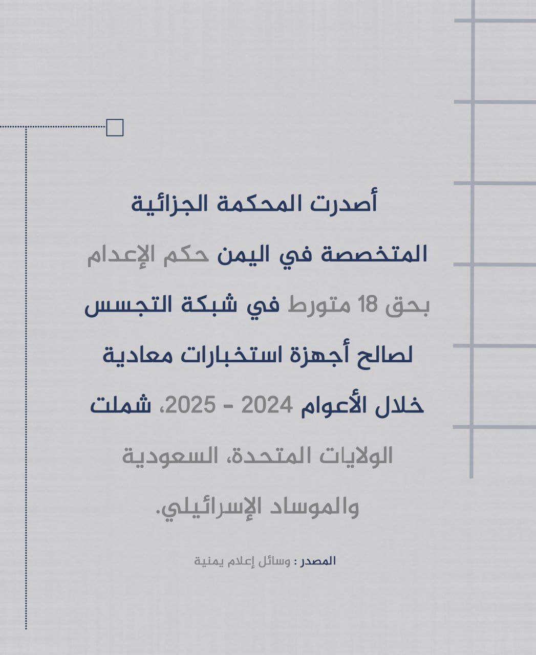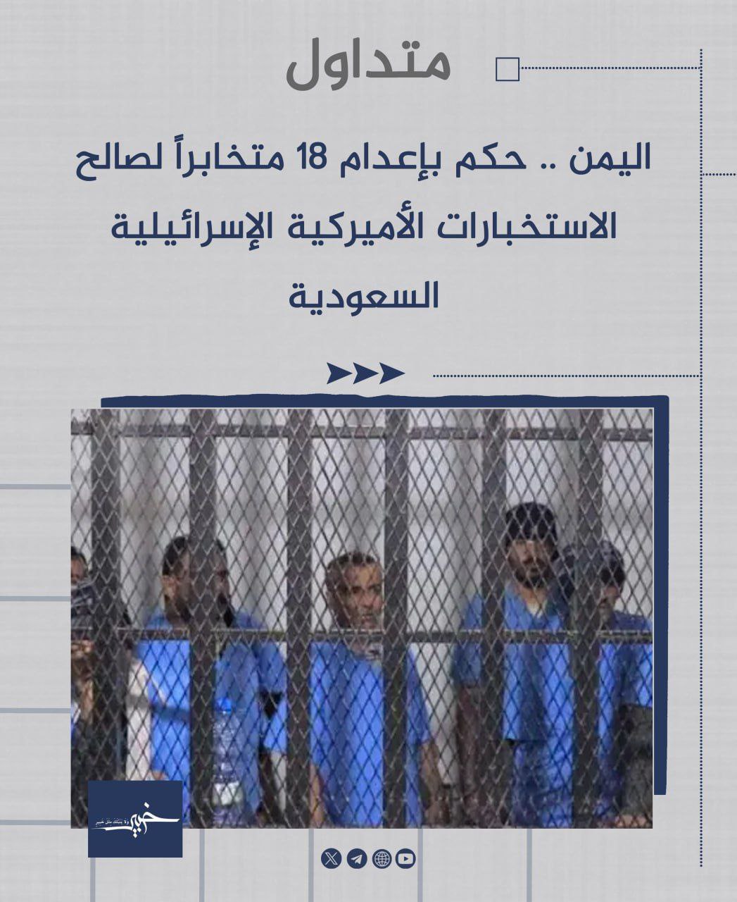 #متداول: اليمن .. حكم بإعدام 18 متخابراً لصالح الاستخبارات الأميركية الإسرائيلية السعودية