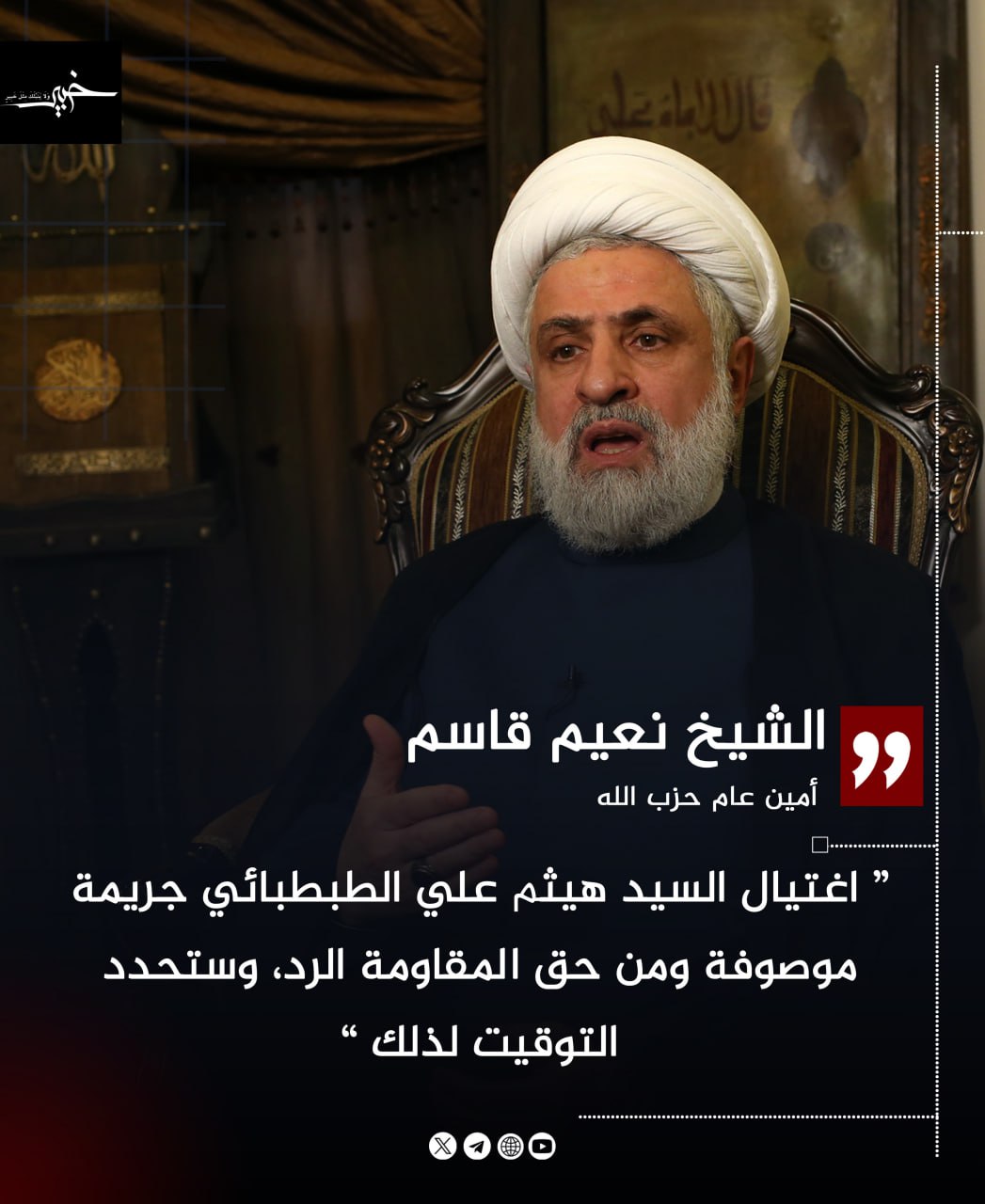 #اقتباس: المقاومة تؤكد أن من حقها الرد على اغتيال الطبطبائي