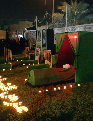 وفي بلدة العوامية بالقطيف أقام الأهالي قبور رمزية للشهداء الذين أعدمتهم السلطات، وفي مقدمتهم الشيخ الشهيد "نمر باقر النمر"، توسطتها كلمة "عرس الشهادة" كُتبت بالشموع، كما رُفعت صور للشهداء الذين قضوا برصاص قوات الأمن السعودية منذ عام 2011.