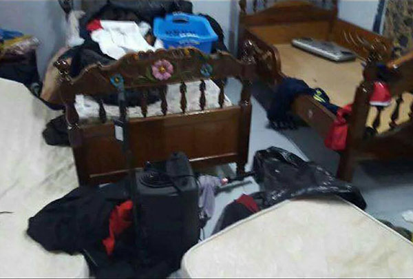 كما تداول نشطاء على مواقع التواصل الاجتماعي صوراً توضح  الإضرار التي خلفتها قوات الأمن أثناء مداهمتها منزل المطلوب مفيد العلوان.