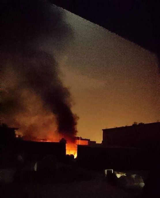 وتصاعدت أعمدت الدخان من عدة مناطق في البلدة وتشير الأنباء الأولية الواردة باحتراق بعض المنازل.