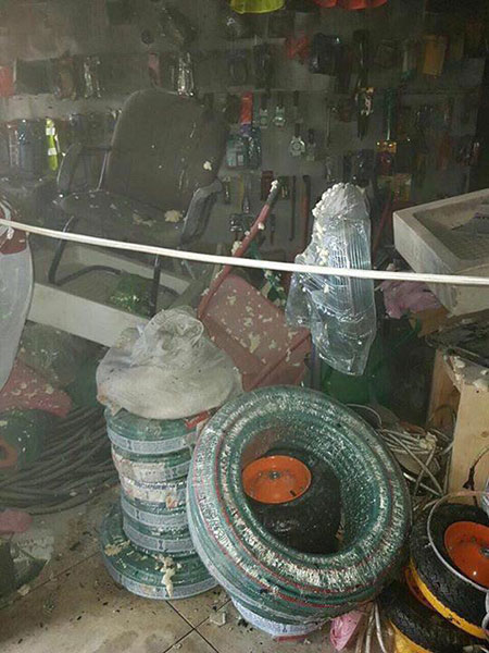كما قامت القوات السعودية بإحراق أحد المحلات التجارية (الريف للسباكة و الكهرباء) و ذلك للمرة الثانية خلال عدوانها على العوامية، وقد تطوع الأهالي لإطفاء النيران إذ أن السلطات منعت الدفاع المدني من الدخول للعوامية و إطفاء الحرائق التي تشتعل في المحلات التجارية و المنازل بسبب كثافة الرصاص و القذائف التي تطلقها القوات السعودية.
