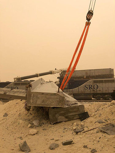 سقوط جسر خرساني في #الرياض على قطار يُصيب سائقه ويُغلق خطاً حديدياً (صور)