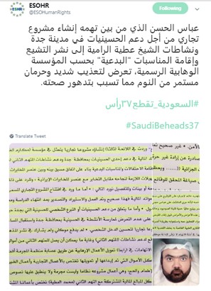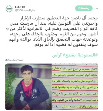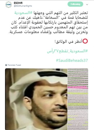 الأوروبية السعودية في وسم #السعودية_تقطع ٣٧ رأس تكشف حقائق مروعة عن أسلوب السلطة مع المعتقلين