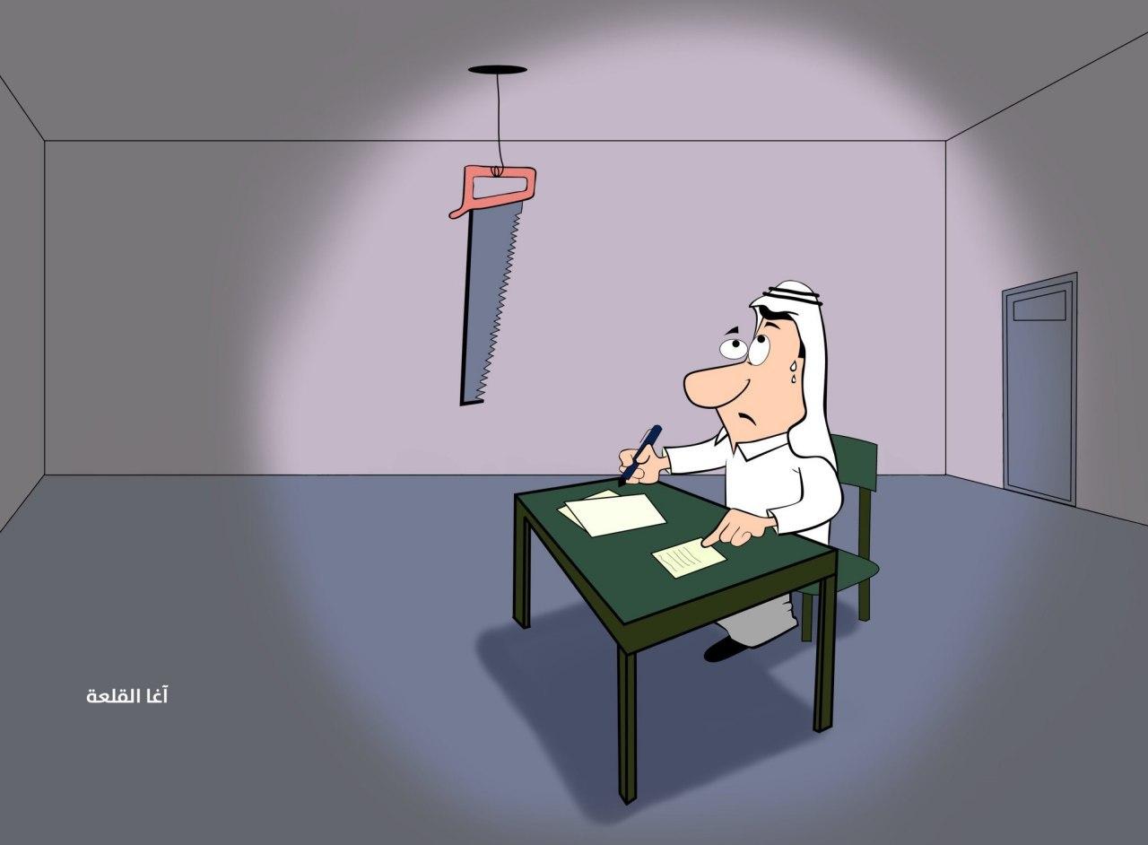محمد أبو محمود نشر رسم كاركاتيري للفنان عمار آغا القلعة، وكتب بجانبها: الفنان يحاكي كيفية تنازل أبناء الشهيد جمال خاشقجي عن دم والدهم والعفو عن قاتليه، تنازل ووقع وإلا المنشار بالمرصاد. وختم تغريدته بهاشتاق: #مملكة_الخوف_والارهاب_والفساد.