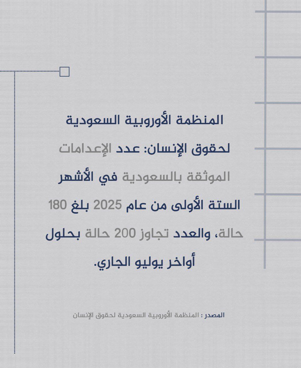 #متداول: الأوروبية السعودية توثق حالات الإعدام لغاية الشهر الحالي