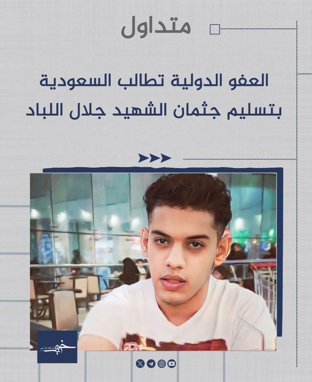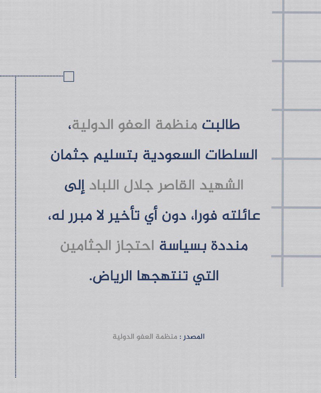 #متداول: العفو الدولية تطالب السعودية بتسليم جثمان الشهيد جلال اللباد