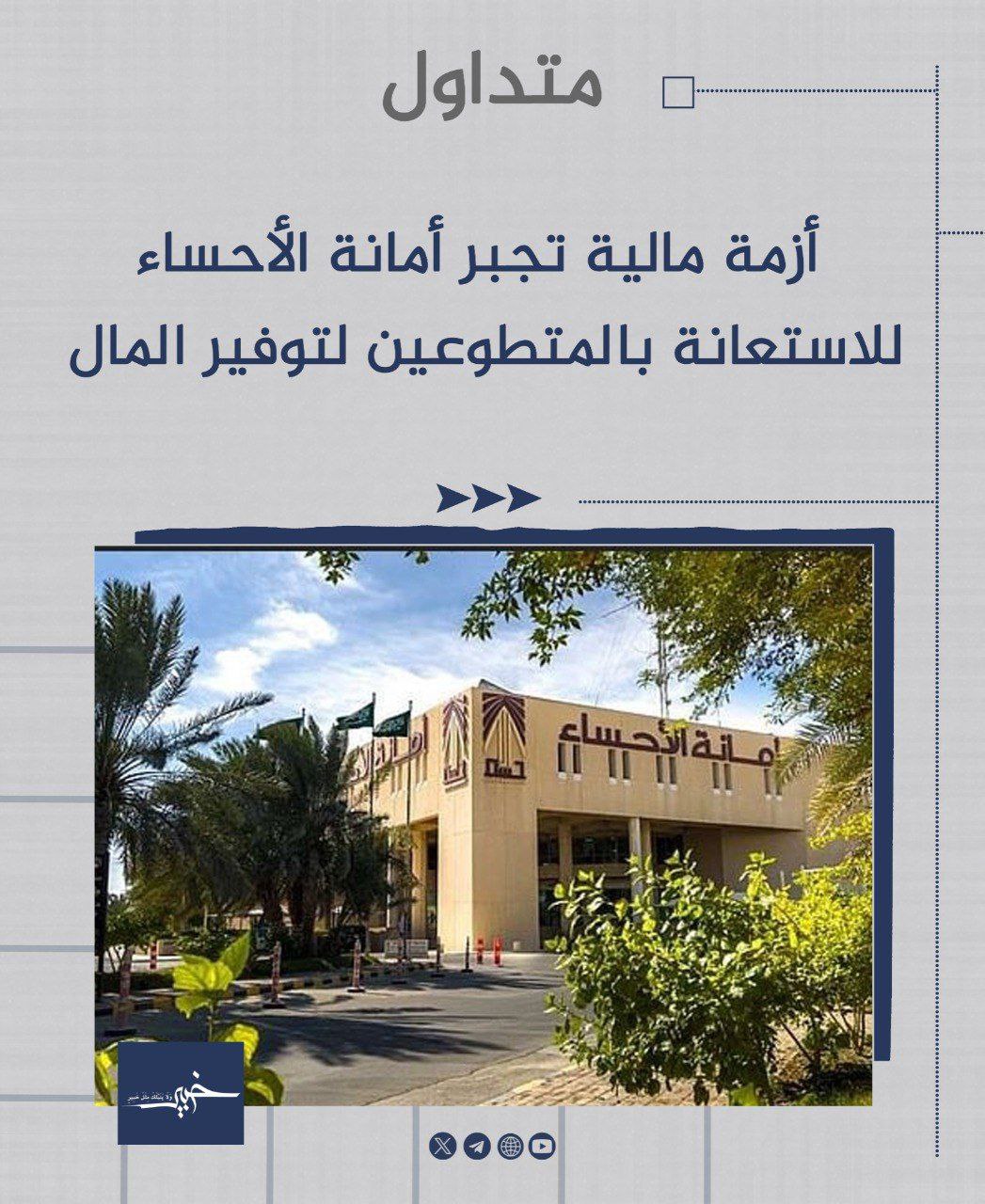 #متداول: أزمة مالية تجبر أمانة الأحساء للاستعانة بالمتطوعين لتوفير المال