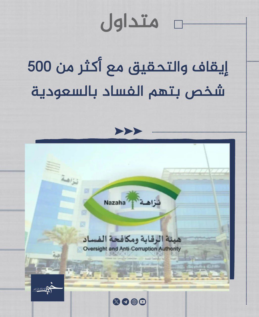 #متداول: إيقاف والتحقيق مع أكثر من 500 شخص بتهم الفساد بالسعودية