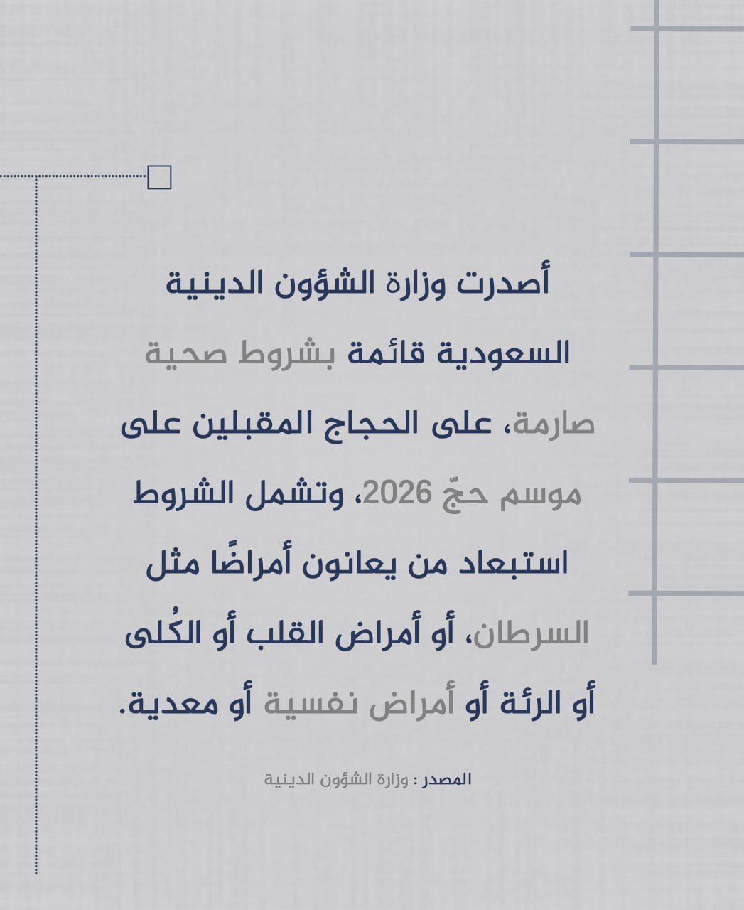 #متداول: شروط صحية صارمة لموسم حج 2026