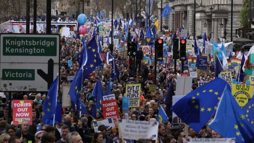 مئات الآلاف يشاركون في مسيرة بـ #لندن للمطالبة باستفتاء جديد حول #بريكست