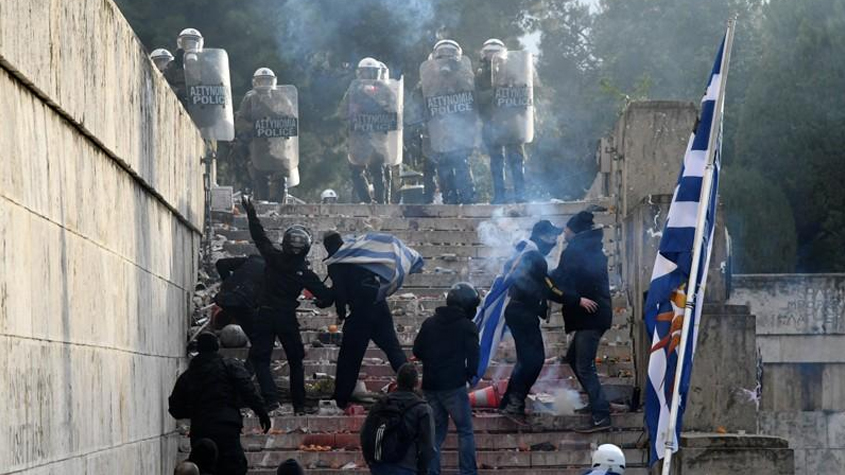 شرطة #اليونان تطلق الغاز المسيل للدموع على محتجين على اسم #مقدونيا