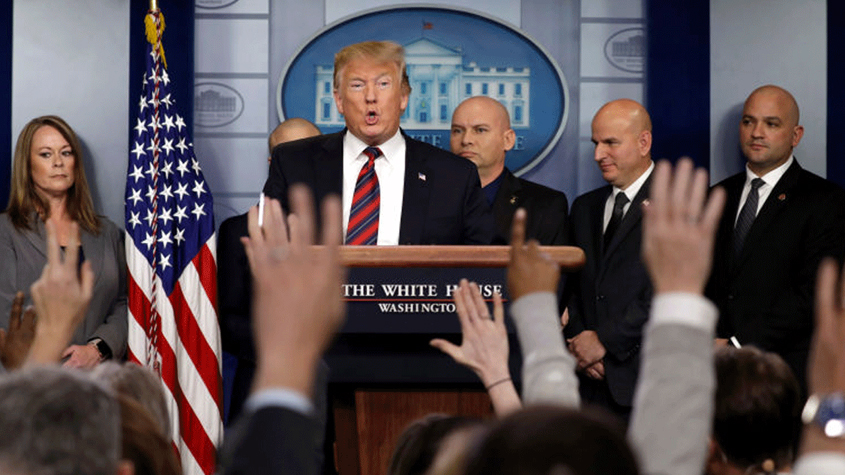 #ترامب للمرة الأولى في قاعة الصحافيين في #البيت_الأبيض دون أن يُجيب!
