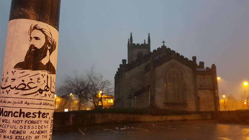 #سينالهم_غضب: تدشين شعار الذكرى السنوية الثالثة في #مانشستر (صور)