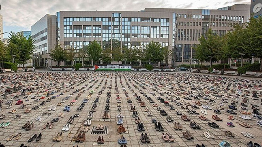 #أوروبا تحتج بأحذيتها على ظلم #الاحتلال_الإسرائيلي للفلسطينيين