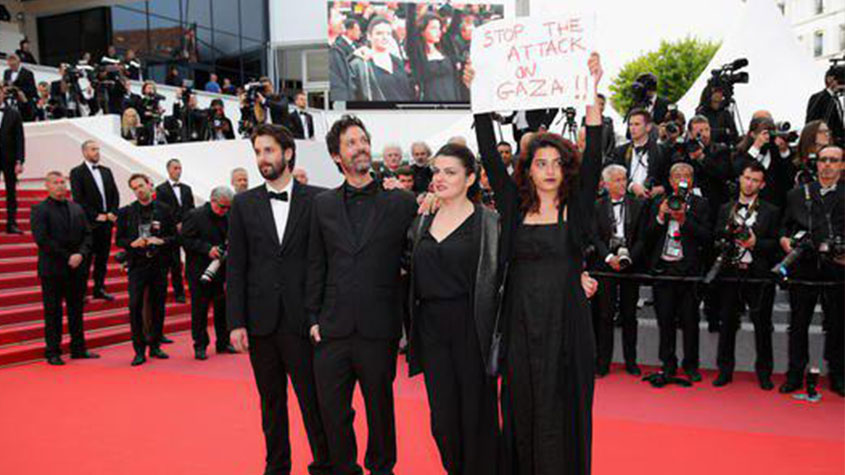 ممثلة لبنانية ترفع لافتة "أوقفوا العدوان على #غزة " في #مهرجان_كان السينمائي