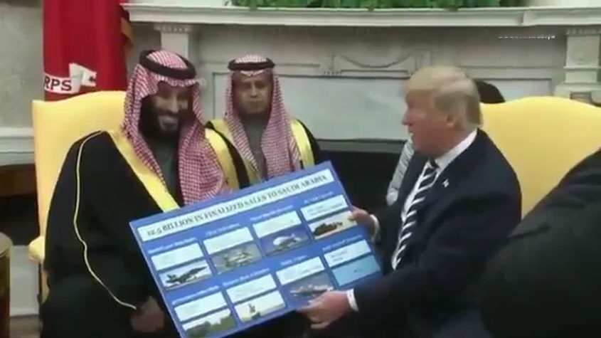 #ترامب مخاطبا #محمد_بن_سلمان عن قيمة الأسلحة: مليار و525 مليون دولار “هذا المبلغ فتات بالنسبة لكم” والأخير يضحك!