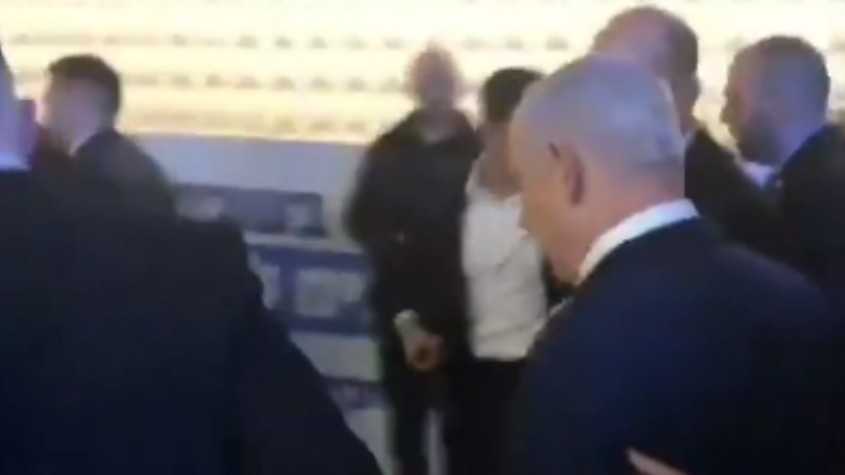 إطلاق صاروخ من #غزة يجبر #نتنياهو على الاحتماء أثناء زيارة مدينة #عسقلان المحتلة