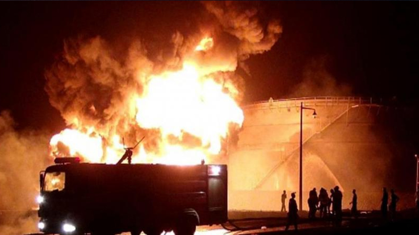 بالفيديو.. اندلاع حريق هائل إثر انفجار داخل مصافي #عدن