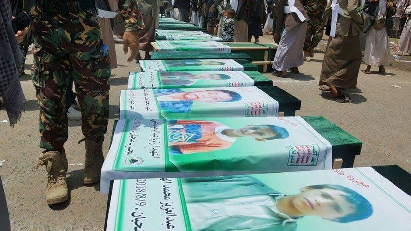 آلاف اليمنيين يشيعون أطفال قتلوا في ضربة جوية شنها #التحالف_السعودي
