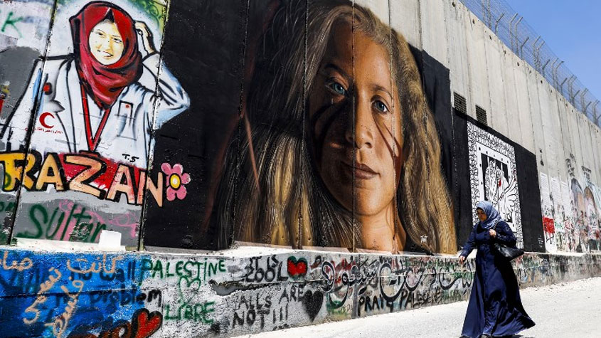 الاحتلال يطرد الرسامين الإيطاليين اللذين رسما المناضلة #عهد_التميمي على جدار الفصل