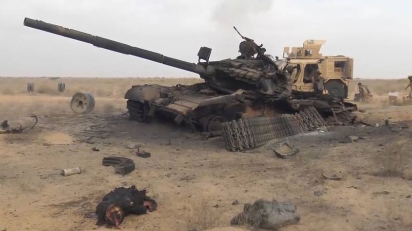#أنصار_الله تستهدف بصاروخ تجمعا لدبابات سعودية