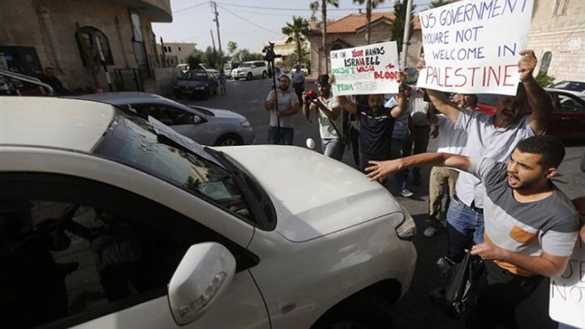 فلسطينيون يرشقون وفدا أمريكيا في #بيت_جالا بالبيض