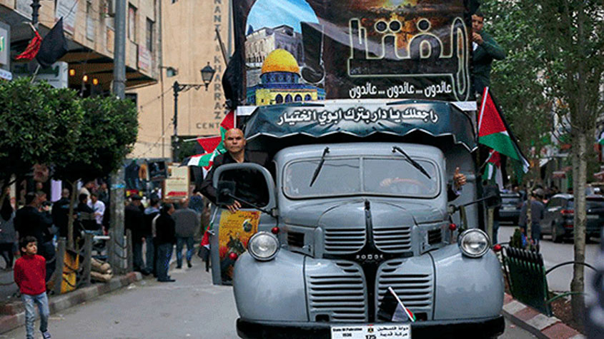 #رام_الله: الفلسطينيون يتظاهرون بشاحنات نقلت أجدادهم في النكبة على أمل العودة بها إلى ديارهم