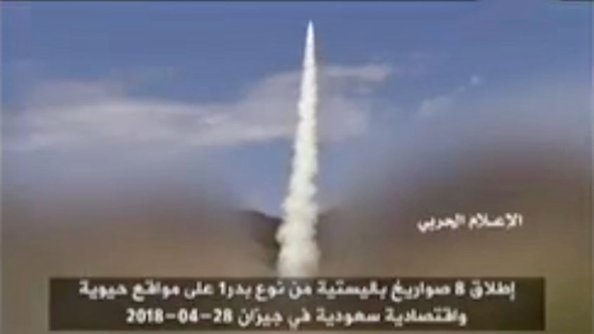 بالفيديو.. لحظة إطلاق 8 صواريخ باليستية دفعة واحدة على #جازان #السعودية