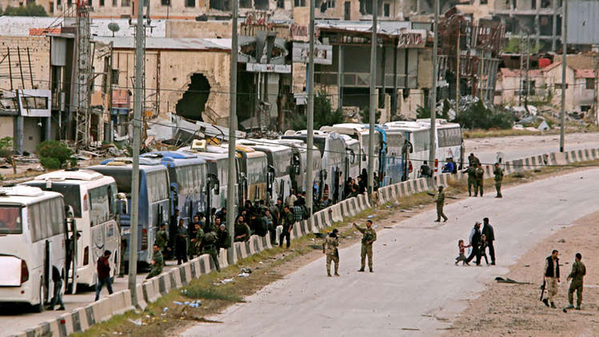 الدفاع الروسية: وصول 4979 من مسلحي "أحرار الشام" وأفراد عائلاتهم إلى #إدلب بعد إخراجهم من #حرستا