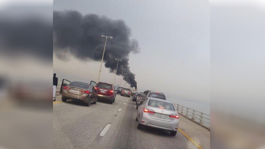 بالفيديو: وفاة شخصين في حادث اصطدام على جسر البحرين واشتعال شاحنة